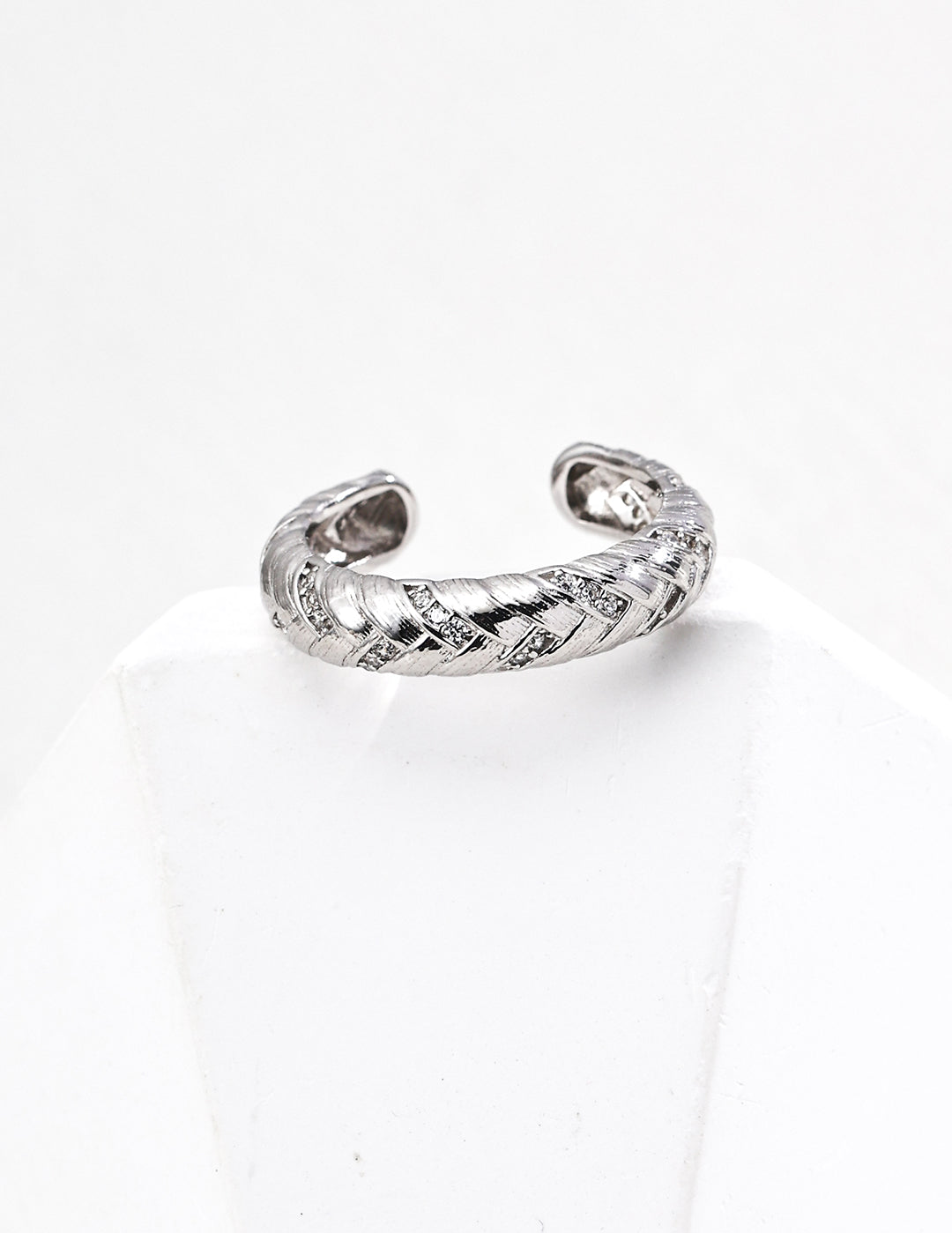 Make a statement with this elegant braid-textured ring, available in both warm gold and cool silver finishes to match your personal style. The intricate braided pattern creates beautiful depth, while diamond embellishments add a touch of sparkle and sophistication. Whether you're dressing up for a special occasion or elevating your daily look, this versatile piece works beautifully on its own or paired with other rings. A timeless investment that brings understated luxury to your jewellery collection.