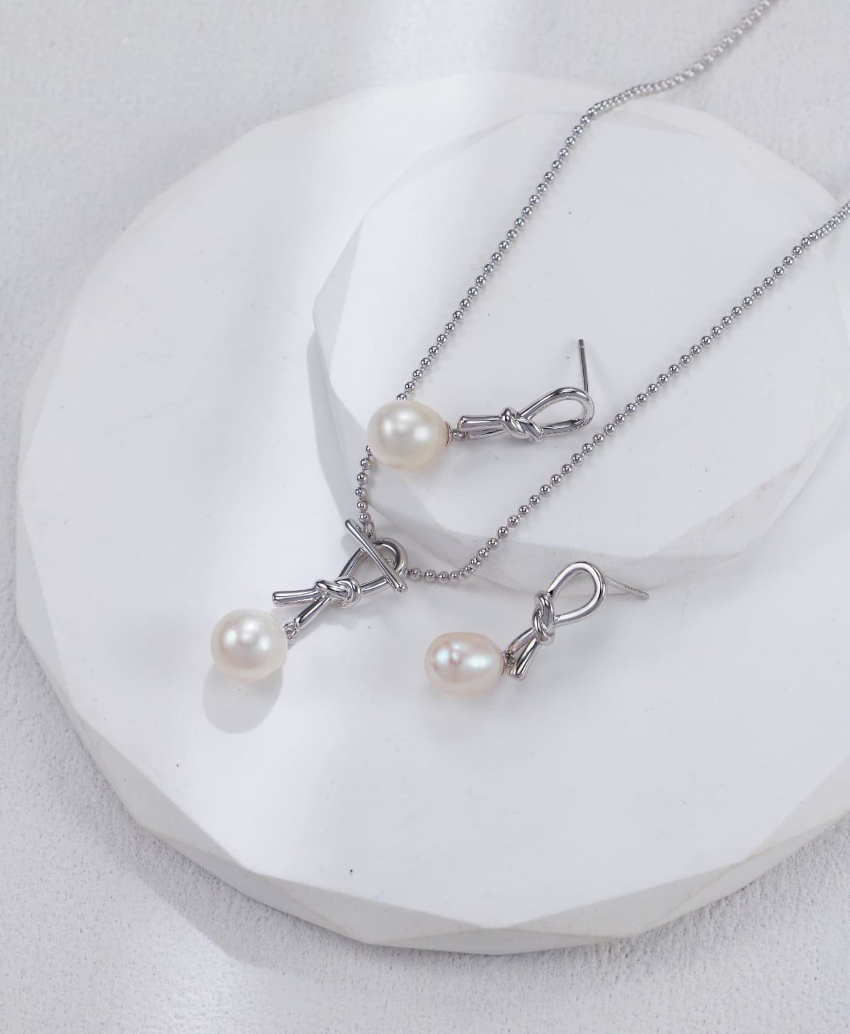 Crafted from 925 silver, these Modern Knot Earrings blend Eastern elegance with contemporary flair. The flowing knot design catches light beautifully, while lustrous pearl accents add soft, luminous appeal. The interplay between polished metalwork and the pearls' warm glow creates a versatile pair that feels both timeless and effortlessly chic—perfect for everyday wear or special occasions.