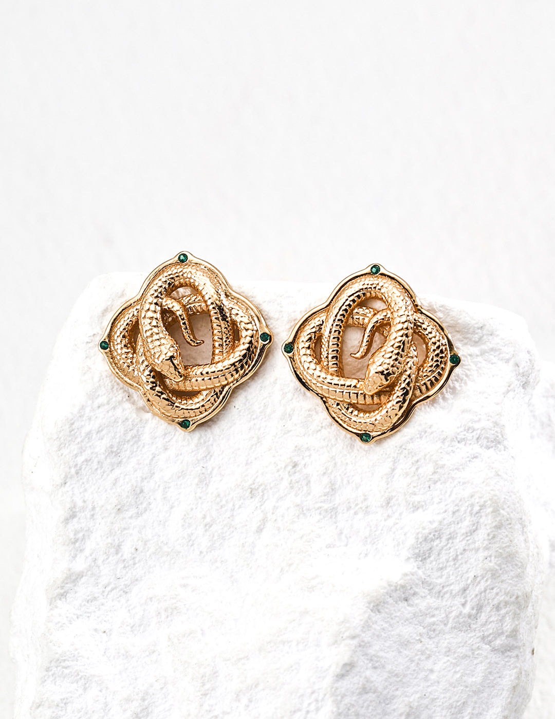 Serpent Muse Earrings capture the mystique of nature's most intriguing creature. These striking studs feature a sleek snake design that coils with understated elegance. Choose between two captivating versions: the classic pearl-adorned style that adds a touch of luminous sophistication, or the minimalist version for those who prefer pure serpentine allure. Either way, you're wearing a symbol of transformation and timeless style. Perfect for making a subtle statement or layering with your favorite pieces.