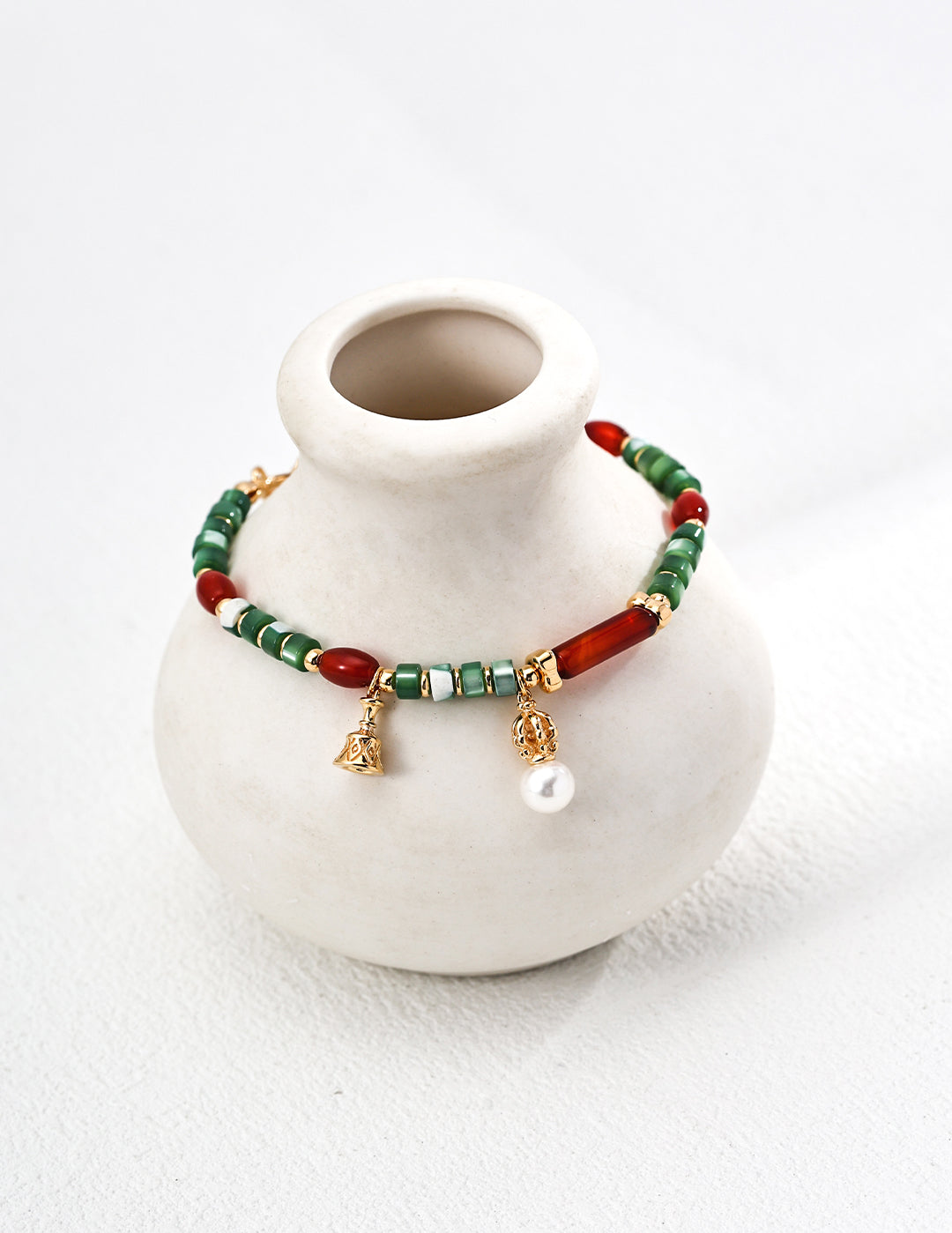 Elevate your everyday style with the Verdant Glow Bracelet, a vibrant mix of natural beauty and timeless elegance. Featuring genuine agate stones in rich, earthy hues paired with lustrous pearls and polished sterling silver accents, this bracelet brings a pop of colour to any outfit. The thoughtful combination of semi-precious stones and precious metals creates a piece that's both eye-catching and versatile—perfect for layering or wearing solo. A casual-cool accessory that celebrates nature's palette.